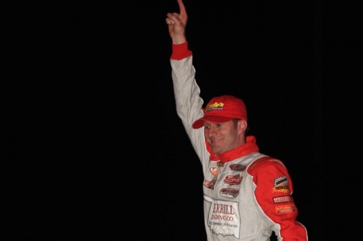 Tony Jackson Jr. celebrates atop his car at Springfield.