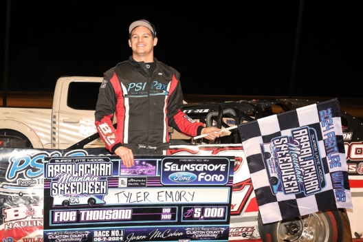 What won the race: Reigning miniseries champion Tyler Emory of King George, Va., powered around race-long leader Drake Troutman exiting the final corner to win Friday's Appalachian Mountain Speedweek opener at Clinton County Speedway in Mill Hall, Pa. Troutman had led 32 of 35 laps until Emory's thrilling move, which earned him $5,000, in the 0.405-second margin to the checkers.