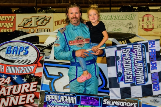 What won the race: Whipping around polesitter Dylan Yoder on the second lap, fellow front-row starter Gregg Satterlee of Indiana, Pa., led the rest of Sunday's 35-lap Appalachian Mountain Speedweek finale at BAPS Motor Speedway for a $5,000 pday. Satterlee secured his third Speedweek victory of the season and clinched the 2024 miniseries title. He also won the title in 2013.