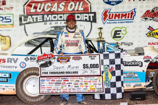 Devin Moran of Dresden, Ohio, rebounded in triumphant fashion from Thursday's flat right-rear while running second, rolling to victory in Friday's second 25-lap Firecracker 100 semifeature at Lernerville Speedway. The 29-year-old led the final 20 circuits for the $5,000 victory as he topped Mike Marlar of Winfield, Tenn., by 1.589 seconds. Pole-starting Michael Norris of Sarver, Pa., led the opening five laps before jumping the turn one cushion and spinning off the racetrack while running second on lap seven. The hometown driver salvaged a 16th-place finish.