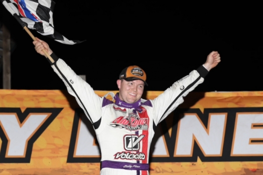 Key notes: Pierce debuted a Longhorn Chassis and lowered the track record in time trials. ... Just after Pierce took the lead in the 40-lapper, Hoffman edged back ahead exiting turn two on the 18th lap, but slipped over the backstretch banking when he ran out of room trying to lap Dennis Erb Jr. ... Tyler Bruening took the checkers nearly sideways in a last-lap scramble out of turn four among several drivers. ... Two cautions slowed the race, the second on lap 34 when Ryan Gustin slowed after contact with Brent Larson forced him over the banking entering turn one. .... Garrett Alberson's spin after a lap-three tangle drew the race's first caution. ... The feature rolled at 9:45 p.m., but without scheduled outside front-row starter Chad Simpson, who couldn't fire after what was later diagnosed as a bad battery. Hoffman inherited his starting spot. ... In heat action, Lance Hofer's car rolled several times when he went over the turn-one banking; he wasn't injured. ... Matt Ryan and Bobby Hansen scratched before feature time. ... The event is in the middle of WoO's busy and far-flung Heartland Grand Tour.