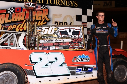 Key notes: The second-starting Steele overtook the polesitting Fultz for the lead on lap two and never looked back as he earned his second special-event triumph at Volunteer over the past year. He previously scored a $5,000 win last July in an American All-Star Series Crate race. … Coming off a pair of $10,000 CRUSA 604 victories last weekend in Tennessee, Weiss shot past Fultz into second on a lap-45 restart but couldn’t draw close enough to challenge Steele over the final circuits. … Cory Hedgecock also passed Fultz following the late restart and finished third as Fultz settled for fourth. … Skylar Marlar completed the top five after grabbing fifth from Randy Weaver on lap 42. … The race’s only caution flag flew on lap 45 when Allen Styck slowed. … The race was run as the undercard to the Volunteer 50 Super Late Model event that saw Dale McDowell of Chickamauga, Ga., pocket $50,050.