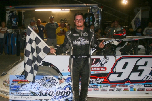 Winner's sponsors: Ferguson’s Paylor Motorsports Longhorn by Wesley Page carries sponsorship from WP Racing Shocks, Coltman Farms, Hoopaugh Grading Company, Franklin Enterprises, Tribble Electric, Night Owl National Contractors, Mega Plumbing of the Carolinas, John Page Racing, Baker-Mitchell Company, Brad Benton Trucking, Sunoco Race Fuels, Lucas Oil, ArmsList.com, DirtCarLift.com, Pro Fabrication and Indocil Art.