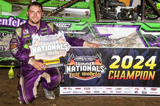Taking advantage when several contenders fell by the wayside, Tyler Erb of New Waverly, Texas, locked up the DIRTcar Summer Nationals championship by leading the final eight laps Sunday at Wayne County Speedway to earn $5,000 and his series-leading 11th victory. Erb was the fourth of four leaders in overtaking 18th-starting Todd Brennan on the 28th of 35 laps and took the checkers 1.554 seconds ahead of ninth-starting Trey Mills. New track record-holder Nick Hoffman led laps 19-23, but a flat tire during a caution knocked him from contention. Dillon McCowan, the lone driver to make every series feature, led the first 18 laps before slipping back and then had a lap-22 flat that doomed his chances.