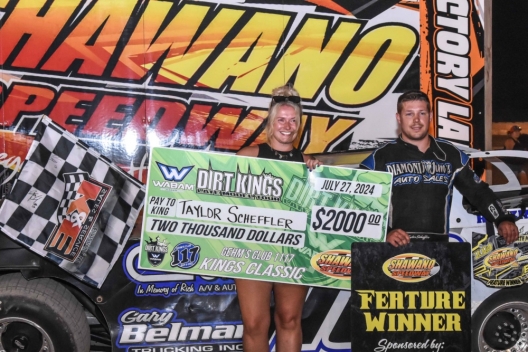 What won the race: Overcoming challenges from Troy Springborn on a late-race restart, pole-starting Taylor Scheffler of Waukesha, Wis., scored a flag-to-flag victory in Saturday's 25-lap Kings Classic at Shawano Speedway. Scheffler sped to the $2,000 victory by 0.257 of a second over Springborn to grab his first Wabam Dirt Kings Tour triumph of the season, fifth of his career and first since July 2, 2021, at Outagamie Speedway in Seymour, Wis.