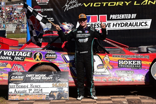 Stretching his World of Outlaws Case Late Model Series winning streak to a record-tying six in a row, Bobby Pierce of Oakwood, Ill., powered around polesitter Tim McCreadie on the second lap and never looked back in Friday's 25-lap USA Nationals opening round daytime prelim. McCreadie finished 1.840 seconds behind Pierce, who pocketed $6,000..