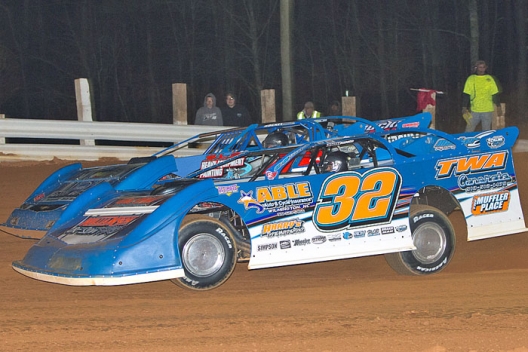 Dean Bowen (32) powers away from David Williams en route to victory at Clary's Speedway.