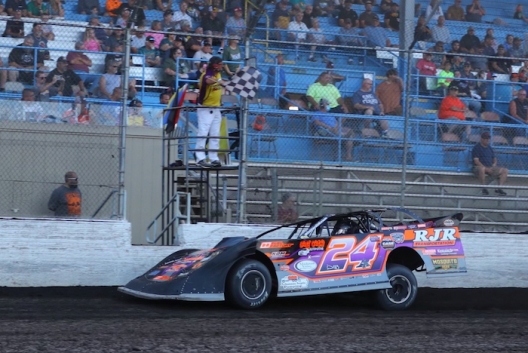 Ryan Unzicker takes the checkers at East Moline Speedway.