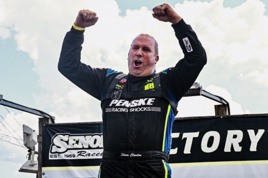 Shane Clanton celebrates his $15,000 victory at Senoia.