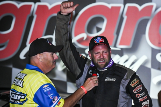 An emotional Jason Jameson in victory lane at Lawrenceburg.
