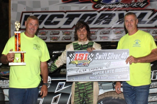 What won the race: Tyler Carpenter of Parkersburg, W.Va., earned $7,500 for capturing 191 Speedway's Swift silver 40, outrunning Derek Fisher and Jared Hawkins in the unsanctioned Super Late Model special.