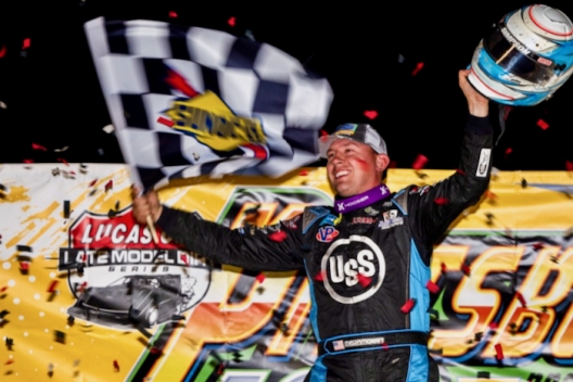 Holding off Jonathan Davenport's late charge, Devin Moran of Dresden, Ohio, led all 30 laps Saturday at Pittsburgh's Pennsylvania Motor Speedway to get the early edge in the Big River Steel Chase for the Championship on the Lucas Oil Late Model Dirt Series. Hanging on late, Moran earned $10,000 in taking the checkers 0.186 of a second ahead of Davenport to put himself among the favorites for Saturday's $50,000 Pittsburgher prize.