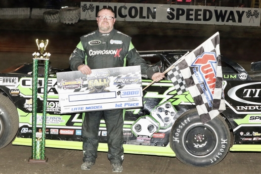What won the race: Repelling a late-race charge from Ryan Unzicker, second-starting Jason Feger of Bloomington, Ill., earned a flag-to-flag victory in Saturday's 25-lap 29th annual DIRTcar Fall Nationals finale at Lincoln Speedway. Feger beat the fast-closing Unzicker to the line by 0.485 of a second for the $3,000 victory, his 15th overall win of the season.