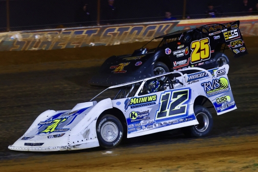 Winner's sponsors: Winger’s Jeff Mathews Motorsports Rocket Chassis is powered by an Andy Durham Racing Engine and carries sponsorship from RV Select Inc., CURS, Super K Express, Keyser Manufacturing, Integra Shocks, Angry Elephant Tattoo and Piercing, FK Rod Ends, A-Plus Collision Center, Hoosier Tire, Simpson Race Products, Collins Signs, DirtCarLift.com, VP Race Fuels, CSR Aluminum Fabrication, Boswell Oil and WrapTech.