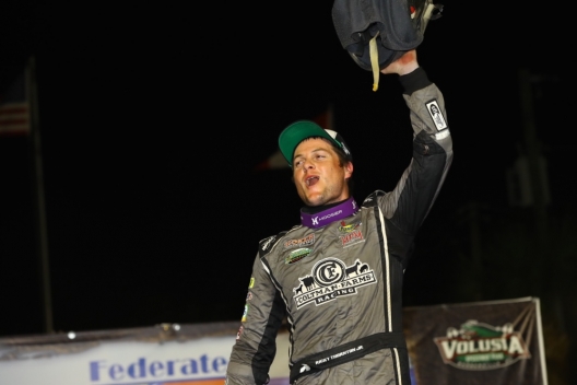 Pole-starting Ricky Thornton Jr. of Chandler, Ariz., dominated the first of three Triple 20 semifeatures Wednesday at Volusia Speedway Park for a $7,000 midweek victory in the Federated DIRTcar Nationals. Thornton took the checkers 1.4 seconds ahead of fellow front-row starter Cade Dillard in extending his miniseries points lead in the chase for the Big Gator trophy.