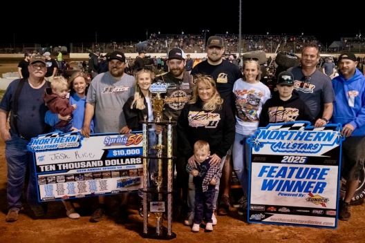 Winner's sponsors: Rice’s Rick Jones-owned Rocket Chassis is powered by a Jay Dickens Racing Engine and carries sponsorship from Rice Excavating & Plumbing, Sunesis Holdings & Construction, MC Tank, Chain Locker USA, Grease Monkey Princess, Map It Right Engineering & Land Surveying, Extreme Sportswear, STAKT Products, Sunoco Race Fuels, Schaeffer’s Racing Oil, Integra Racing Shocks and Slicker Graphics.