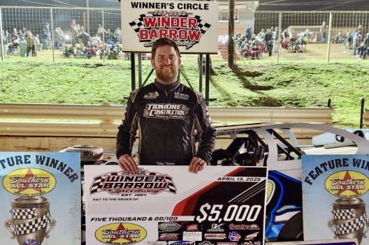 What won the race: Second-starting Dillon Tidmore of Gadsden, Ala., repelled a late-race challenge from David McCoy to win Saturday's 50-lap Southern All Star Series debut at Winder-Barrow Speedway. Tidmore controlled the entire distance for the $5,000 top prize, beating McCoy to the line by 0.425 of a second for his third-career SAS victory and his first of the season.