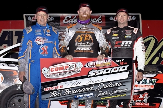 What won the race: Pole-starting Tyler Stevens of Searcy, Ark., dominated 30 laps Friday at Batesville Motor Speedway to win the opening night of the Bad Boy 98 weekend for the second straight season. Stevens pocketed $5,000 in taking the checkers 1.389 seconds ahead of Tony Jackson Jr. in a caution-plagued Comp Cams Super Dirt Series event that lasted 48 minutes.