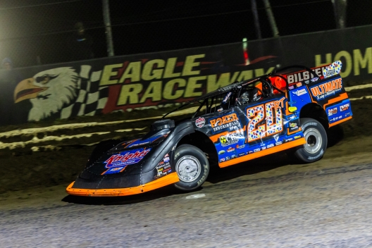 Thornton’s balls-to-the-wall style worked, propelling him to the checkered flag in the biggest Dirt Late Model event ever contested at the third-mile oval known for sprint car racing. He lost the lead to Jonathan Davenport of Blairsville, Ga., on lap 36 shortly after a restart but immediately regained it the following circuit and stayed there the rest of the way to defeat Davenport by 1.8 seconds.