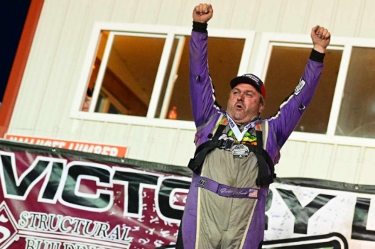 Scott Ward celebrates his seventh WISSOTA Challenge victory.