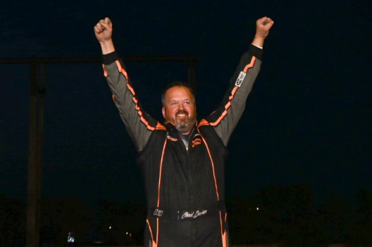 Chad Becker celebrates his first Tri-State Series victory of the season.