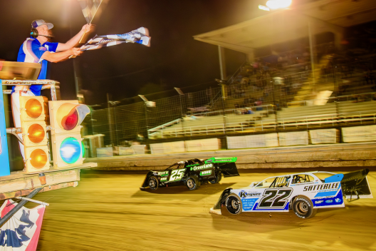 Mason Zeigler (25z) narrowly beats Gregg Satterlee (22) to the checkers.
