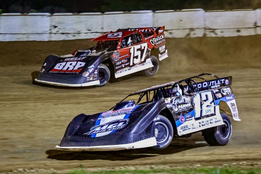 Jason Jameson (12) fended off Mike Marlar (157) for $10,000 at Mudlick Valley Raceway.