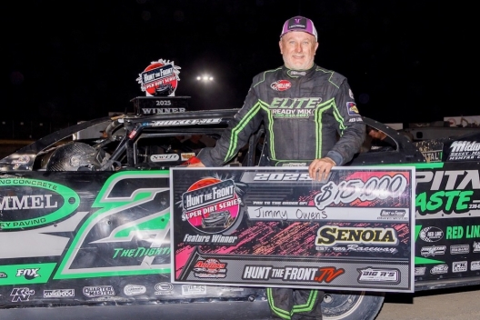 What won the race: Taking advantage when Joseph Joiner hopped the turn-two cushion on lap 42, fifth-starting Jimmy Owens of Newport, Tenn., paced the final nine circuits to capture Saturday's 50-lap Independence Shootout at Senoia Raceway. Owens stretched his lead in the final laps, winning by 2.988 seconds over Joiner for his fourth career Hunt the Front Super Dirt Series victory, second this season and second at Senoia.