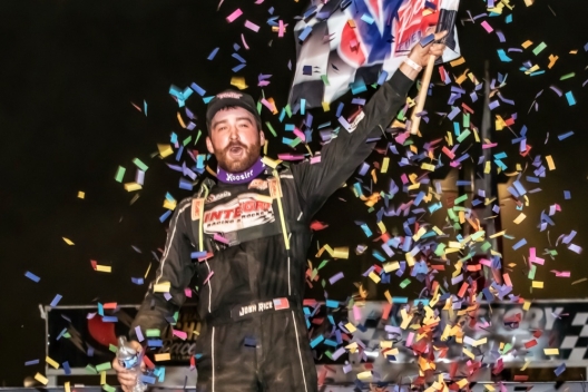 Winner's sponsors: Rice’s Rick Jones-owned Rocket Chassis is powered by a Jay Dickens Racing Engine and carries sponsorship from Sunesis Holdings, M.C. Tank Transport, AirMax Heating and Cooling, Glenwood Electric, Rice Excavating & Plumbing, Chain Locker USA, Impact RaceGear, RBRGear.com, Schaeffers Oil, Sunoco Race Fuels, Victory Seats, DirtCarLift.com, TopSide Marketing and Slicker Graphics.