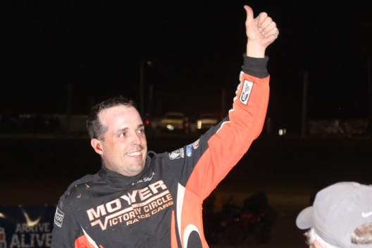 Jesse Stovall gives the thumbs up in Springfield's victory lane.