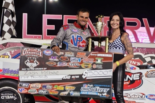 Zach Milbee picks up a $5,000 paycheck at Lernerville Speedway.