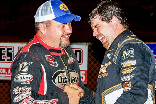 Runner-up Riley Hickman (right) congratulates winner Randy Weaver.