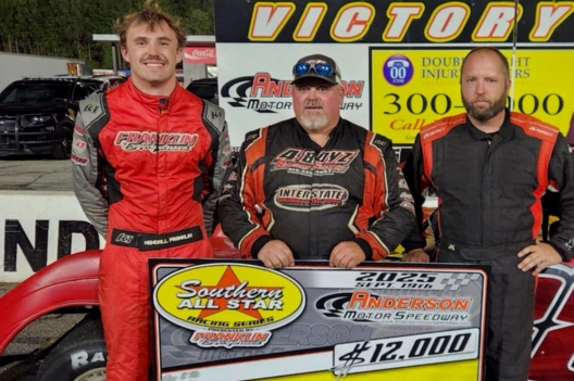 Key notes: Oliver nabbed his first SAS win since Sept. 4, 2023's C.T. Barnett Memorial at Tri-County Racetrack in Brasstown, N.C., a $10,034-to-win event that honored his late grandfather; Oliver now helps promote events at Tri-County. ... Oliver's $12,000 payday is the richest of his career. ... His other feature win this season came May 31 at Georgia's Sugar Creek Raceway, worth $4,000 on the Topless Outlaw Series. ... Heath Hindman trailed Oliver all 50 laps, but never truly challenged for the lead. ... Kendall Franklin inherited third when Dante Curtis slowed and pulled in under green on lap 30. ... Kendall's father and former series champ Billy Franklin took fourth when David Payne retired on the 35th lap. ... The race's lone caution flew on lap 47 when Cale Finley slowed from sixth shortly after being lapped by Oliver; he pitted then continued to finish eighth, the final starter running at the finish. ... Michael Luna was credited with 11th as the race's first retiree when he pulled off on lap 14. ... The 50-lapper lasted 15 minutes with five starters completing the distance. ... This event drew eight entries last year.