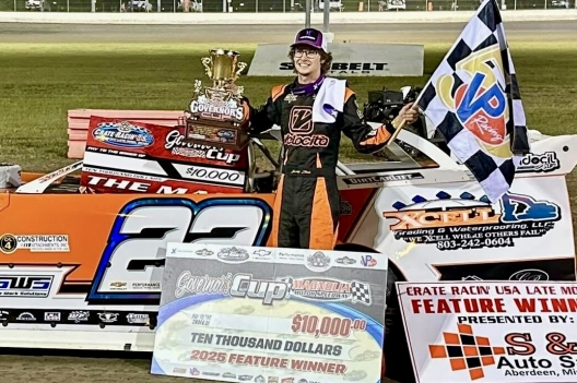 What won the race: Fighting off challenges from Austin Yarbrough and regaining control for good on lap 42, polesitter Jeremy Steele of York, S.C., led all but five laps in winning Saturday's $10,000 21st annual Governor's Cup at Magnolia Motor Speedway. Steele beat Randall Beckwith by 2.169 seconds for his third Rogers-Dabbs Crate Racin' USA 604 Series victory and fourth overall feature win of the season.