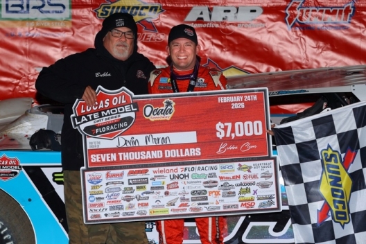 Key notes: Moran, the defending series champion who also won last year's Ocala opener, became Lucas Oil's first two-time winner of 2026. ... He won Friday at All-Tech Raceway in Ellisville, Fla., and now has 15 career Georgia-Florida Speedweeks victories. ... Moran has 24 career full-field Lucas Oil Series victories. ... Runner-up Brandon Sheppard led the first 13 laps. ... Third-place finisher Clay Harris, whose right-rear tire went flat just after the race, scored his third top-five of the year, doubling his career total on the series entering the season. ... Dan Ebert got into the wall with five laps remaining but gathered his car in just ahead of leader Devin Moran. ... Ocala continues Wednesday with another non-points event, the second of five Lucas Oil Series races this week. ... The feature took eight minutes with 16 cars on the lead lap (20 were running at the finish). ... Watch live on FloRacing.