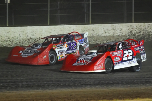 Bobby Pierce (32) overtook Drake Troutman (22*) for the lead in Friday's Duel at the Mag opener.