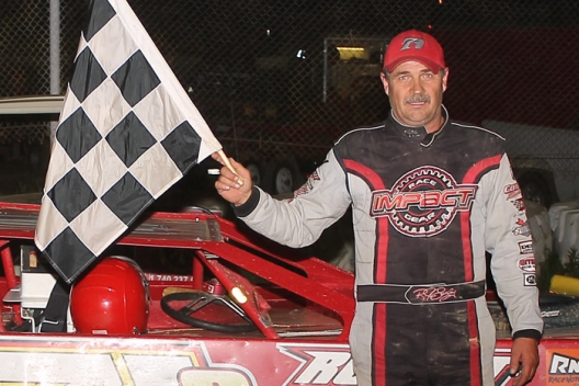 Winner's sponsors: The winning Rocket Chassis has sponsorship from Conley River Terminal, Conley Trucking, Impact Race Gear, Poske's Performance Parts and Shain Custom Decals.