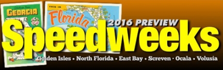 The 2016 Georgia-Florida Speedweeks race-by-race schedule for Super Late Model events at six dirt tracks, two in Georgia and four in Florida. Action runs from Feb. 4-20 at Golden Isles Speedway in Waynesville, Ga.; North Florida Speedway in Lake City; East Bay Raceway Park in Gibsonton, Fla.; Screven Motor Speedway in Sylvania, Ga.; Bubba Raceway Park in Ocala, Fla.; and Volusia Speedway Park in Barberville, Fla. (complete Speedweeks coverage):